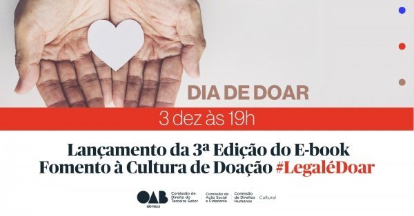 O e-book "Fomento à Cultura de Doação #LegaléDoar" será lançado no dia 3 de dezembro, às 19h...