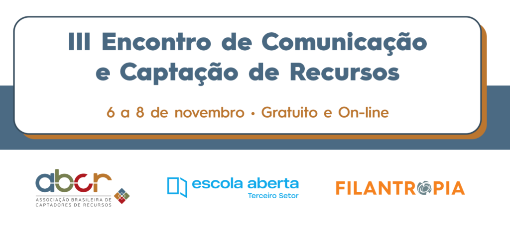 O 3º Encontro de Comunicação e Captação de Recursos, parceria da Associação Brasileira de Captação de Recursos (ABCR) com a Escola Aberta do Terceiro Setor e Rede Filantropia, ocorre nos dias 6 e 7 de novembro. Serão mais de 30 palestras, além de uma plenária com as três instituições refletindo sobre a importância da confiança nas organizações para a prática da captação de recursos.