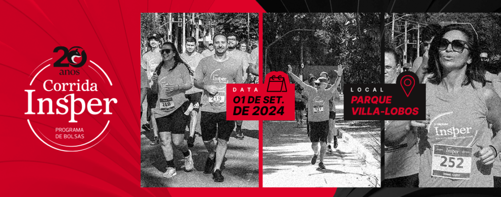 Em comemoração às duas décadas do Programa de Bolsas, o Insper promoverá a 1ª Corrida Insper no dia 1º de setembro, no Parque Villa-Lobos, em São Paulo. O evento tem como objetivo reunir até 1.500 participantes e arrecadar fundos para a iniciativa que já auxiliou mais de 900 estudantes desde 2004. As inscrições estão abertas e podem ser realizadas através do Ticket Sports.
