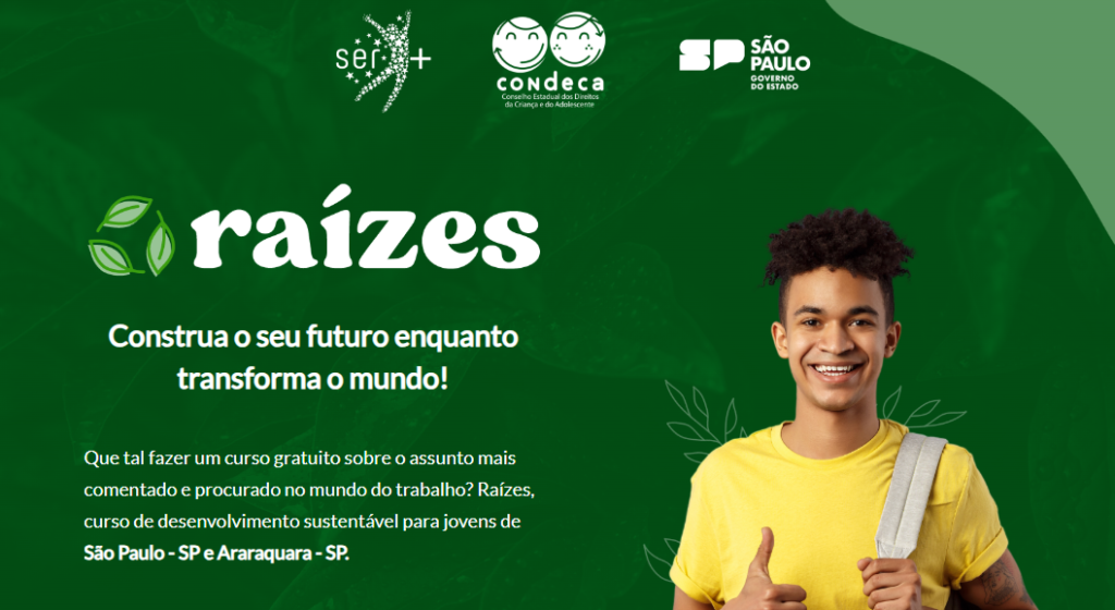 Com objetivo de promover o crescimento pessoal e profissional para jovens em vulnerabilidade, o Instituto Ser+, que desde 2014 promove iniciativas para o desenvolvimento pessoal e profissional da juventude, em parceria com o CONDECA (Conselho Estadual dos Direitos da Criança e do Adolescente), abre 100 vagas para o projeto Raízes, que visa oportunizar o fortalecimento de habilidades comportamentais e conhecimentos acerca do desenvolvimento sustentável, utilizando a ciência e a tecnologia para promover um aprendizado útil à vida e ao trabalho. As inscrições para o programa estão abertas e podem ser realizadas através do portal do Instituto, até o dia 01 de abril.