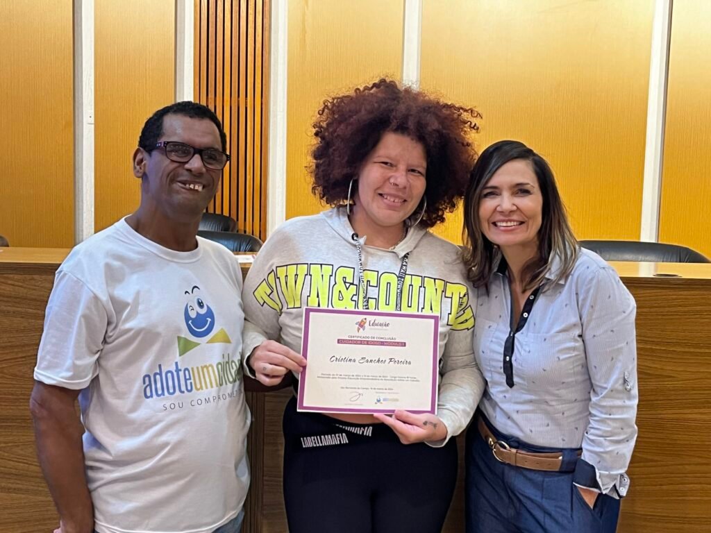 A cerimônia também incluiu a coleta de currículos dos formandos pela ILPI Residência Primaveras, visando futuras oportunidades de emprego. Antonio Carlos Veiga, representante da Associação Adote um Cidadão, falou sobre a importância da formação profissional gratuita e do compromisso da ONG com a capacitação que contribui para a sociedade.