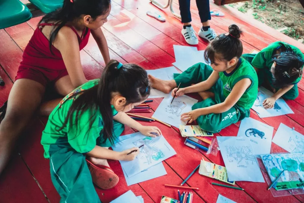 Um desses projetos é o “Plantando Saberes & Colhendo Florestas”, que teve como um dos resultados obtidos no mês que se comemora o Dia Mundial do Meio Ambiente: a elaboração de um baralho educativo e guia de espécies-bandeira. O jogo de cartas foi elaborado a partir de atividades que ocorreram em 2023, no âmbito do eixo “Trilhando Espécies”, concentrando-se em interações diretas com membros da comunidade. O objetivo era identificar as espécies de animais e vegetais predominantes em seus territórios, sensibilizar sobre a relevância de cada uma para o ecossistema e determinar quais seriam as espécies-símbolo, geralmente chamadas de espécies-bandeira. Esse termo indica espécies de seres vivos cuja conservação é prioritária e pode servir de símbolo para causas ambientais maiores, como a proteção de um ecossistema inteiro.